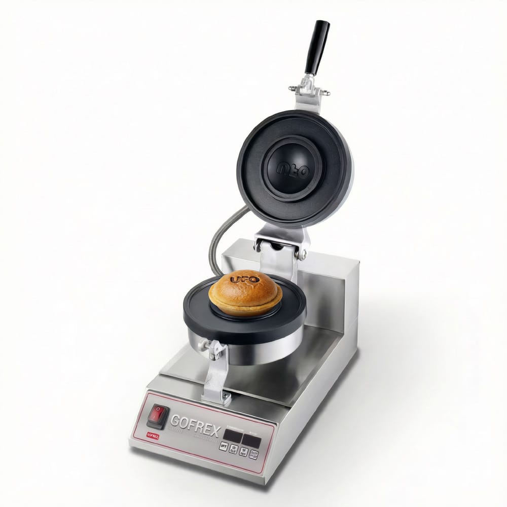 Maskin för att baka UFO-burgare från Gofrex används för snabb tillagning och formning av hamburgare med en karakteristisk, sluten form som liknar en flygande tefat. Pressen med en diameter på 16 cm producerar en färdig hamburgare med måtten cirka 19,2 × 11,2 cm, och hela processen tar bara cirka 30 sekunder. Den slutna brödkonstruktionen gör att ingredienserna stannar tätt inuti och såser inte rinner ut under ätandet. Maskinen fungerar lika bra i stora restauranger som i mindre lokaler och matställen.