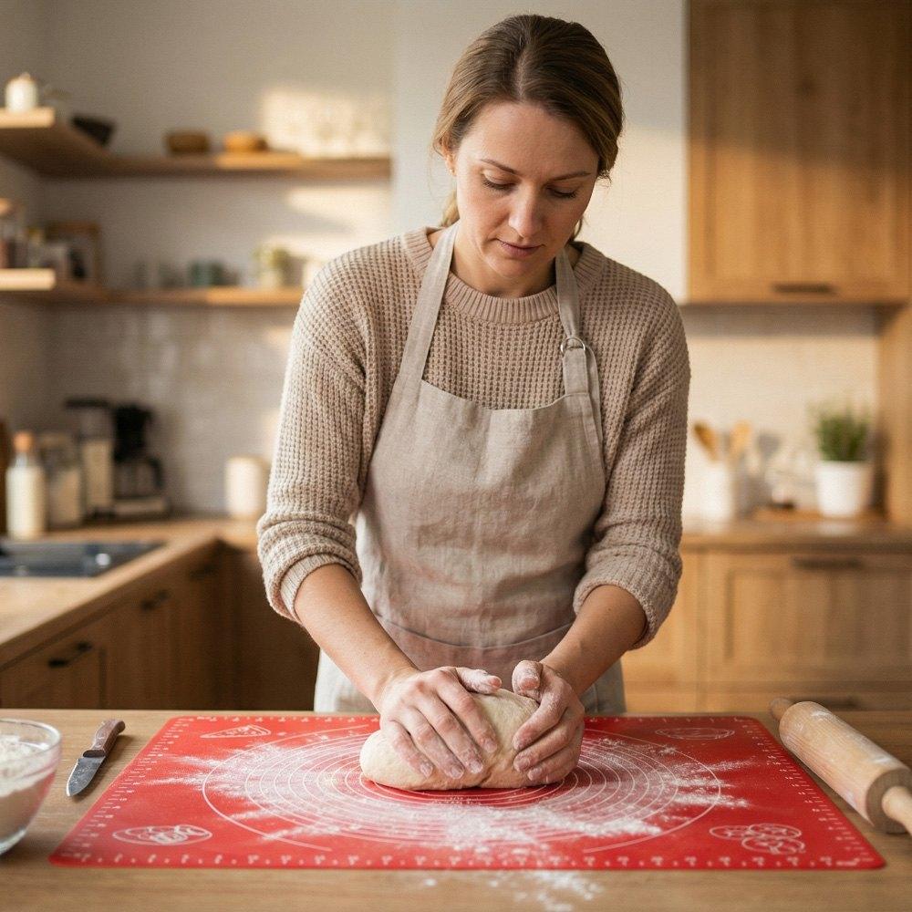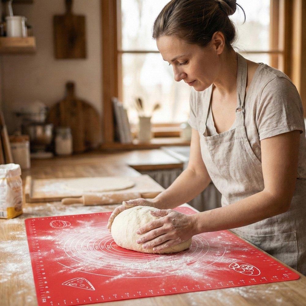 Arbetsytan fungerar bra vid arbete med olika typer av deg. Mångsidighet i användningen omfattar både söta och salta degar. Mattan underlättar förberedelsen av bakverk som kräver noggrant utkavlande. Produkten minskar mängden mjöl som samlas på bänken under arbetet. Städning av köket efter bakning tar betydligt mindre tid än med traditionella metoder.