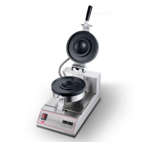 Maskinen från märket Gofrex kännetecknas av en hållbar konstruktion, enkel hantering och kort driftstid. Dessa egenskaper gör den till en lämplig lösning för stora restaurangkedjor och mindre verksamheter. Tillverkarens garanti samt en non-stick-beläggning underlättar användningen och minskar kostnaderna för drift, vilket ökar investerings effektiviteten.